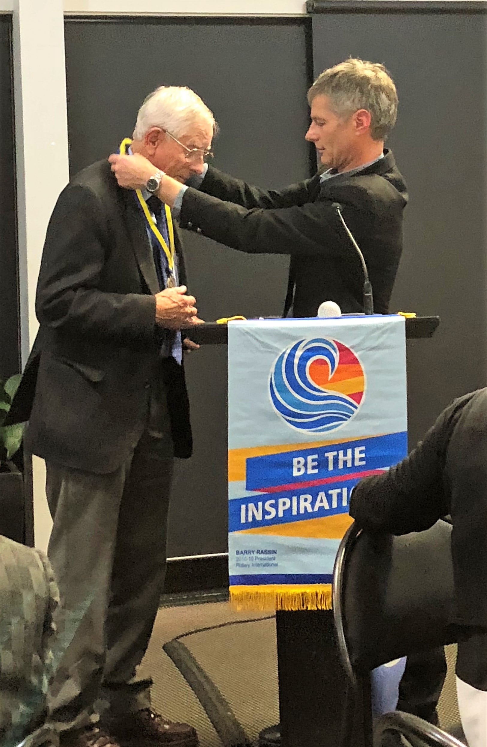 Rotarians, partners, and guests – it is my privilege to present one of Rotary’s highest awards, a Paul Harris Fellow, to Mr. John Lamb – an outstanding Rotarian who celebrated 33 years with our club, just 1 week ago.